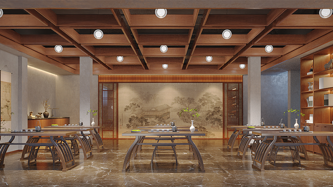 針對不同場景需求,劃分開放品茗區(qū)、私密包廂及商務洽談區(qū)。例如大廳設(shè)置可移動格柵實現(xiàn)空間靈活分隔,包間融入榻榻米茶席與獨立衛(wèi)浴,兼顧社交儀式感與實用性。 - 細節(jié)處的文化敘事