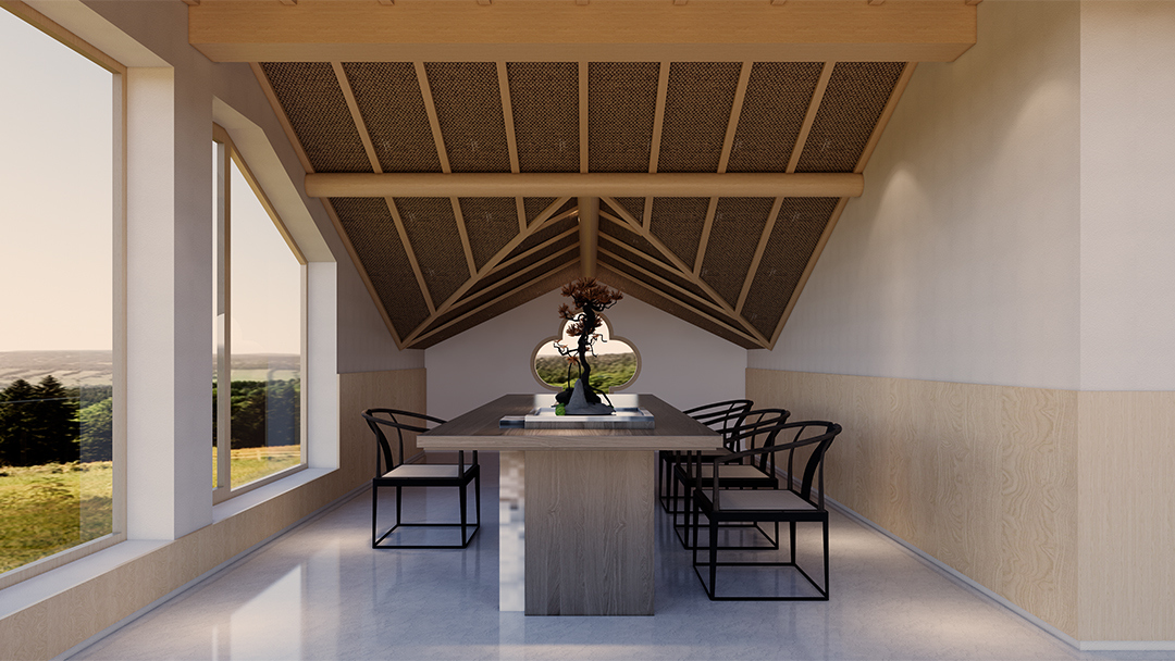 針對(duì)不同場(chǎng)景需求,劃分開(kāi)放式茶臺(tái)區(qū)、私密包廂及枯山水庭院。例如大廳設(shè)置抬高地臺(tái)與蒲團(tuán)坐席,包間融入榻榻米茶席與獨(dú)立景觀窗,實(shí)現(xiàn)社交互動(dòng)與獨(dú)處冥想的自由切換。 - 文化符號(hào)的現(xiàn)代轉(zhuǎn)譯