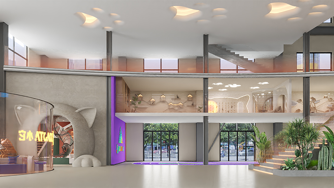 采用“模塊化隔斷+開放式布局”組合,劃分美容區(qū)、寄養(yǎng)艙、活體展示區(qū)及醫(yī)療操作間。例如犬類活動區(qū)鋪設防滑橡膠地板,貓柜采用雙層立體結構并嵌入隱藏式貓砂盆,提升空間利用率的同時減少寵物應激反應。 - 自然元素與治愈氛圍