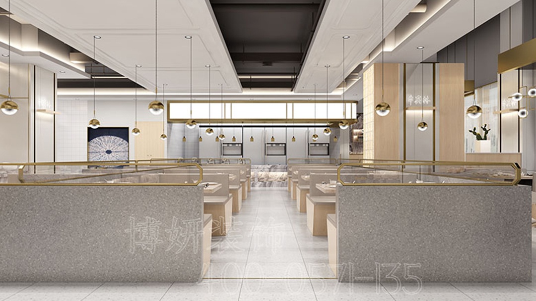 杭州現(xiàn)代簡約風快餐店,以純凈的白色主色調(diào),勾勒出簡潔明快的輪廓,營造出清爽開闊的用餐環(huán)境;黃色,作為點睛之筆巧妙融入其中。墻面上的黃色裝飾線條,似靈動的音符,打破了單調(diào);桌椅上搭配的黃色坐墊,為硬朗的線條增添了幾分柔和與溫暖。吊燈,是空間的視覺焦點,造型簡約的吊燈垂掛而下,暖黃色的燈光傾灑,不僅照亮了每一處角落,更營造出溫馨愜意的氛圍。燈光與黃色點綴相互呼應,讓整個快餐店既具現(xiàn)代時尚感,又不失溫馨舒適。在這里,顧客能快速享受美食,感受現(xiàn)代簡約風格與黃色活力碰撞出的獨特魅力。