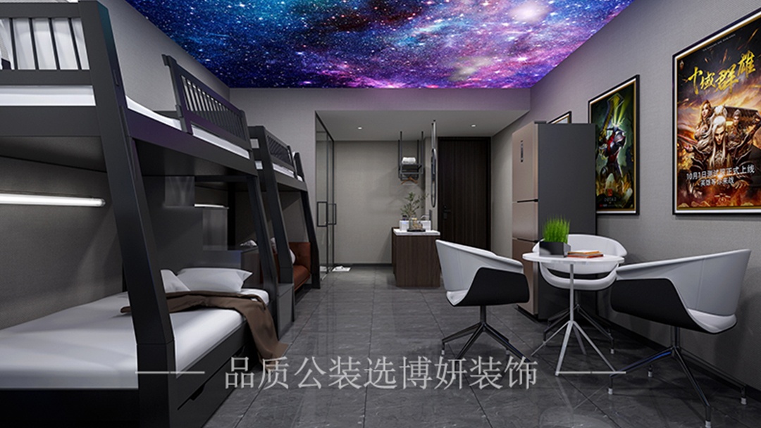 功能區(qū)合理劃分:合理劃分電競(jìng)區(qū)、休息區(qū)等功能區(qū)域,滿足年輕人 “玩、吃、住” 一體化需求。同時(shí)做好電路布局、通風(fēng)降噪,提供高品質(zhì)電競(jìng)設(shè)備和舒適家具。