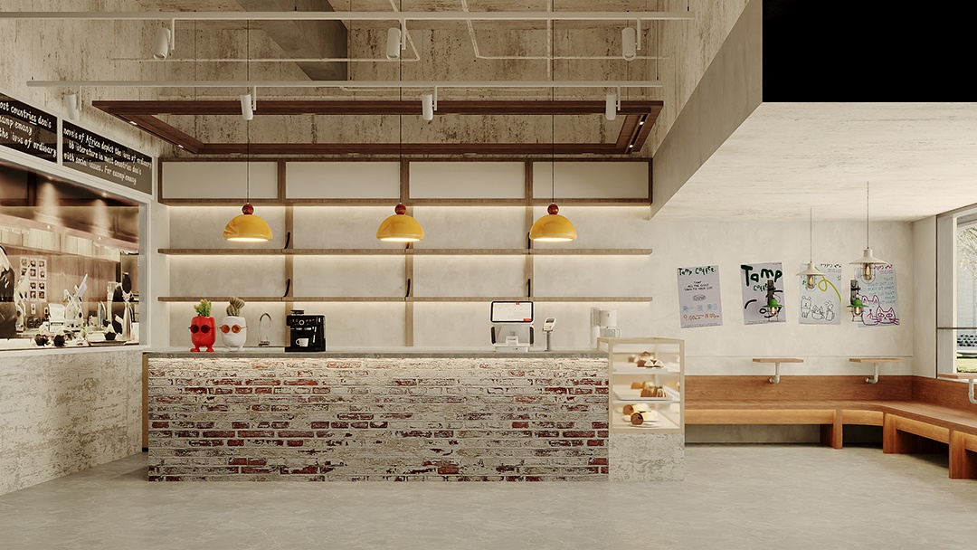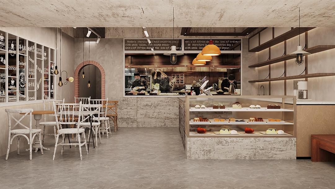 杭州工業(yè)風(fēng)烘焙店裝修設(shè)計,本案以“裸感美學(xué)”為基調(diào),保留原始混凝土結(jié)構(gòu)與銹蝕鋼架,搭配暖調(diào)木元素平衡冷峻感。中央設(shè)置可透視的定制銅管發(fā)酵箱陣列,成為動態(tài)藝術(shù)裝置。照明采用軌道射燈與工業(yè)吊燈組合,精準(zhǔn)聚焦于面包陳列臺。回收舊木板拼接的客座區(qū),與銹鋼板吧臺形成質(zhì)感碰撞,點綴攀援綠植軟化空間。整體以“未完成的精致”為理念,在粗獷中凸顯手作溫度與工藝可視性。