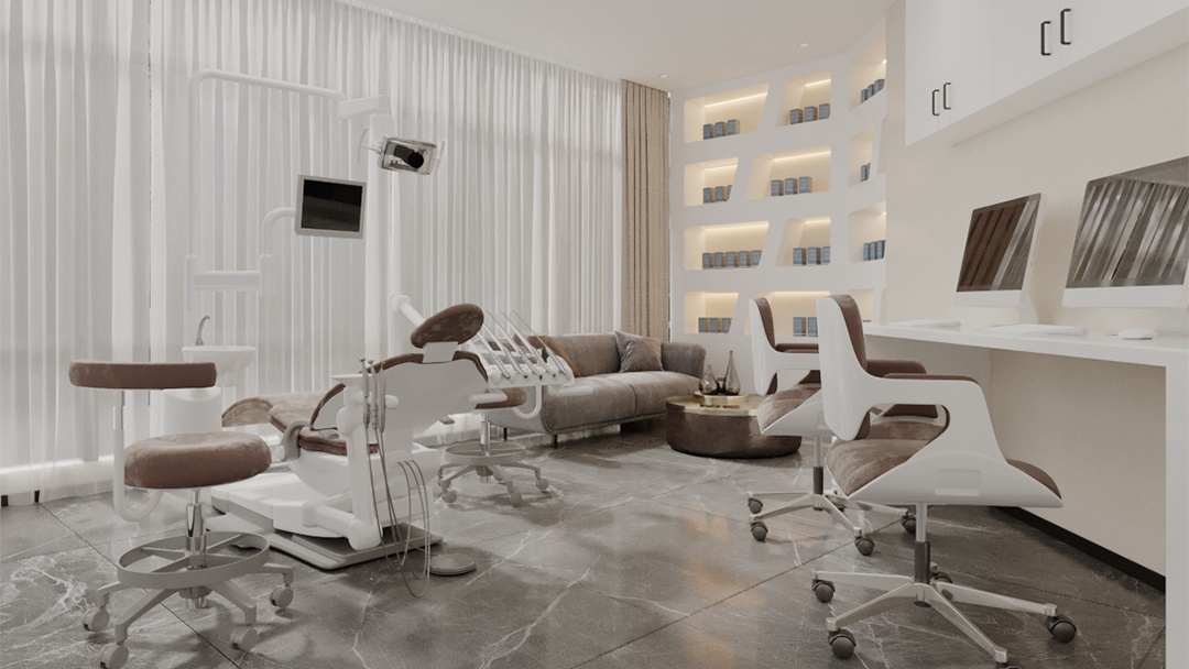 針對口腔診所的特殊性,博妍裝飾特別注重細節(jié)處理:獨立診室配備全景式玻璃隔斷,保證私密性的同時引入自然光線;智能照明系統(tǒng)可根據(jù)不同場景調(diào)節(jié)亮度,減少患者緊張感;消毒供應區(qū)采用透明可視化設計,增強操作透明度與信任度。此外,公司還引入BIM技術實現(xiàn)多專業(yè)協(xié)同,并通過AR/VR技術讓客戶提前預覽裝修效果,確保設計方案精準落地。