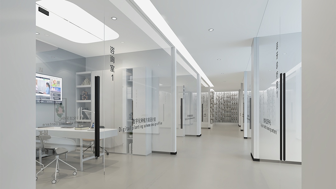 針對口腔診所的特殊性,博妍裝飾特別注重細節(jié)處理:獨立診室配備全景式玻璃隔斷,保證私密性的同時引入自然光線;消毒供應(yīng)區(qū)采用透明可視化設(shè)計,增強操作透明度與信任度。此外,公司還引入BIM技術(shù)實現(xiàn)多專業(yè)協(xié)同,并通過AR/VR技術(shù)讓客戶提前預(yù)覽裝修效果,確保設(shè)計方案精準落地。