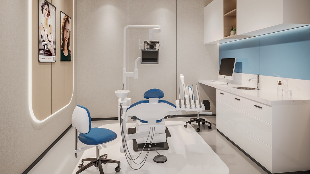 針對(duì)口腔診所的特殊性,博妍裝飾從三大維度打造高性?xún)r(jià)比方案:在功能布局上,嚴(yán)格遵循醫(yī)療規(guī)范,劃分接待區(qū)、診療區(qū)、消毒供應(yīng)區(qū)等核心板塊,確保潔污分流、動(dòng)線(xiàn)高效;在材料選擇上,采用醫(yī)用級(jí)抗菌板材、無(wú)縫地面處理系統(tǒng)及環(huán)保涂料,既保障環(huán)境安全又控制長(zhǎng)期維護(hù)成本;在人性化體驗(yàn)方面,通過(guò)柔光漫反射照明、低飽和度色彩搭配以及靜音隔音設(shè)計(jì),提升患者舒適度的同時(shí)降低運(yùn)營(yíng)能耗。