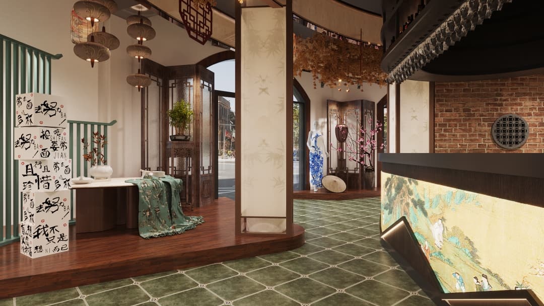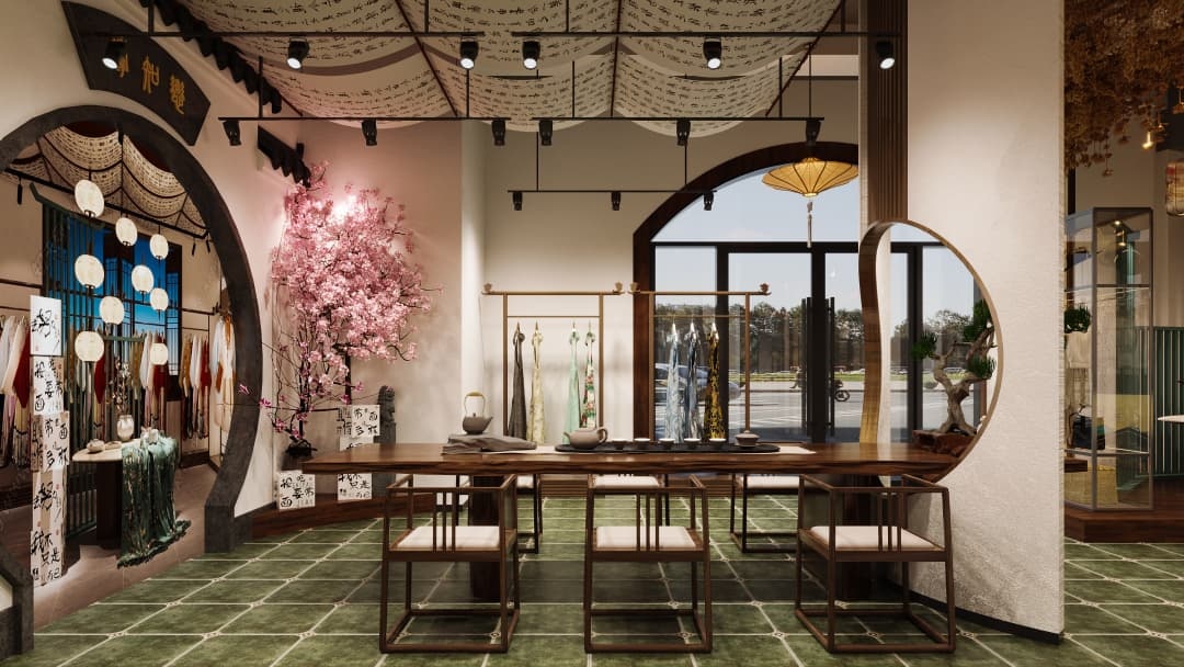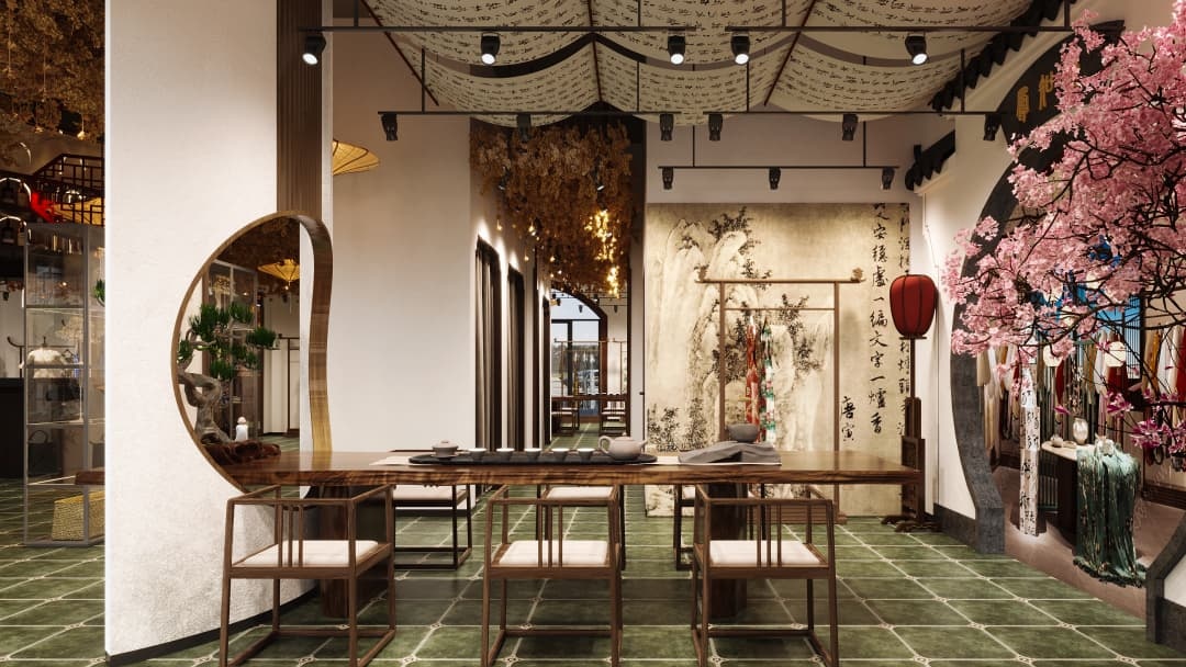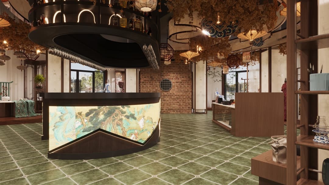 - 文化符號(hào)提取:運(yùn)用青花瓷紋樣、中式屏風(fēng)等傳統(tǒng)元素,結(jié)合金屬框架與霓虹燈帶形成視覺碰撞,既保留文化底蘊(yùn)又彰顯年輕活力;