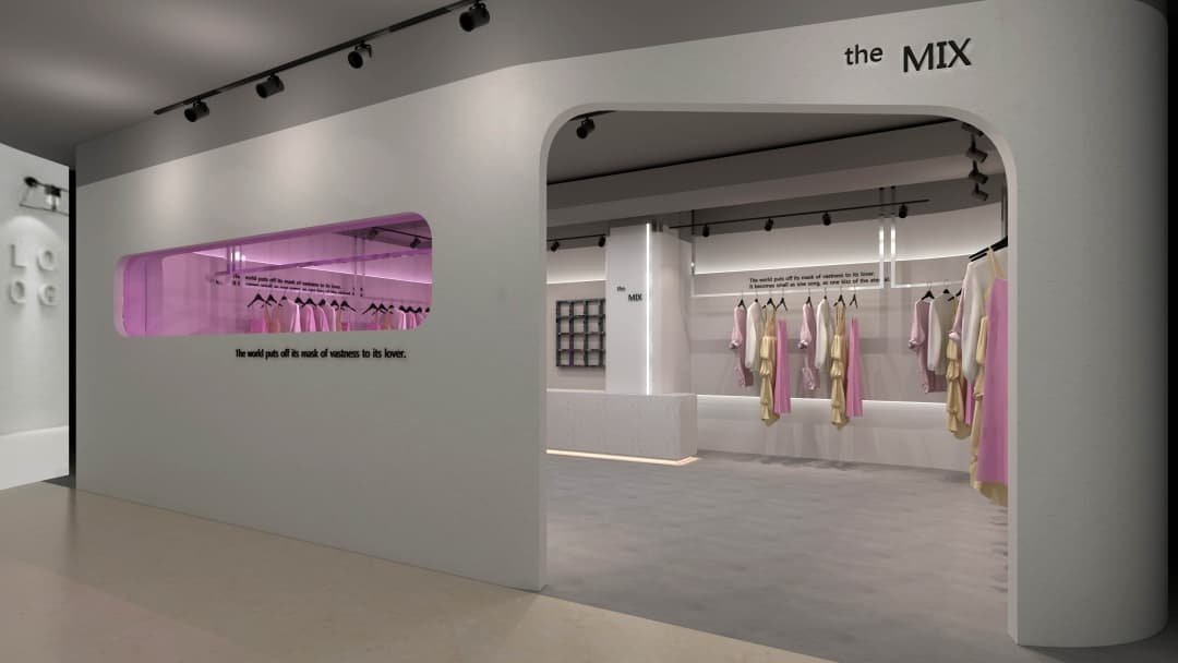 :設(shè)置半圍合試衣區(qū)與靜態(tài)陳列區(qū),利用留白藝術(shù)突出服裝主體,提升顧客探索體驗(yàn)。