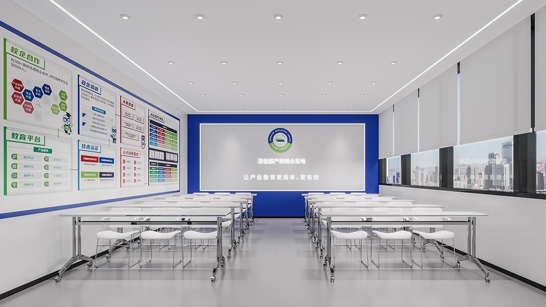 杭州科技展廳裝修設(shè)計,以簡潔白為主色調(diào),開啟一場科技與美學(xué)的對話。純凈的白色墻面與地面,營造出開闊、明亮,且極具未來感的空間氛圍,讓參觀者仿若置身科技純凈之境。藍(lán)色,作為點綴色巧妙融入,從展示設(shè)備的邊框到指示標(biāo)識,藍(lán)色線條與光影交織,為簡潔空間注入靈動與科技活力,凸顯科技產(chǎn)品的創(chuàng)新與智慧。裸頂噴黑處理,堪稱點睛之筆,工業(yè)風(fēng)的粗獷與整體簡潔風(fēng)形成反差又完美融合,專業(yè)大氣之感撲面而來。搭配精心布局的燈光系統(tǒng),重點突出展示區(qū)域,引導(dǎo)參觀者視線。杭州科技展廳,以簡潔白藍(lán)與裸頂噴黑的獨特設(shè)計,打造出一個既具科技專業(yè)度,又富有藝術(shù)美感的展示空間。