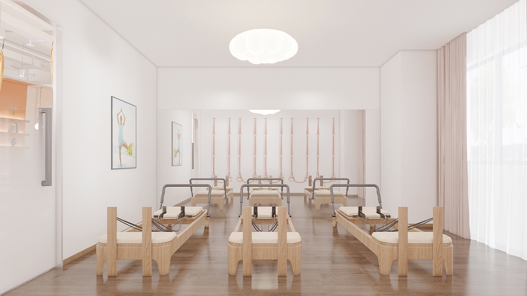 杭州瑜伽館+健身房融合空間裝修設計,本案以「動靜平衡哲學」為核心理念,通過光影材質(zhì)劃分動靜雙區(qū)。瑜伽區(qū)采用弧形地臺與透光軟膜天花,營造冥想氛圍;健身區(qū)配置模塊化智能器械與心率投影墻,強化科技感。過渡帶設置「能量回廊」——可變色玻璃隔斷隨課程需求切換通透度,兼作共享休憩吧臺。聲學系統(tǒng)分區(qū)獨立調(diào)控,空氣循環(huán)實現(xiàn)干濕區(qū)分離。整體以自然肌理與金屬細節(jié)融合,滿足身心雙重訓練的場景無縫轉換。