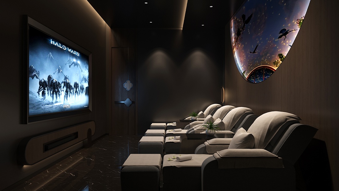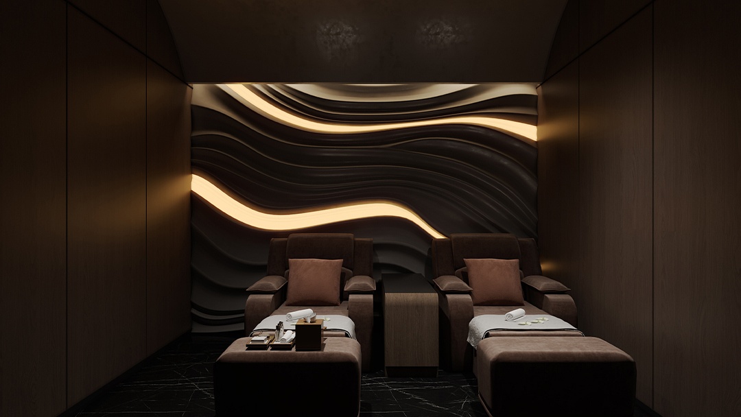 杭州現(xiàn)代輕奢風足浴店裝修設計,本案以“流動的靜奢”為基調(diào),采用淺灰大理石與古銅金屬勾勒精致輪廓??臻g以弧形燈光帶引導動線,包廂采用電動霧化玻璃門與絲絨簾雙重隔斷系統(tǒng)。足療區(qū)配備智能感應沙發(fā),可一鍵調(diào)節(jié)角度與加熱功能,墻面嵌入山水紋玉石背光板。重點打造“星空冥想廊”——鏡面頂棚嵌入光纖燈陣,結(jié)合地暖溫控與白噪音系統(tǒng),在都市中心營造出兼具科技感與治愈力的輕奢養(yǎng)生空間。