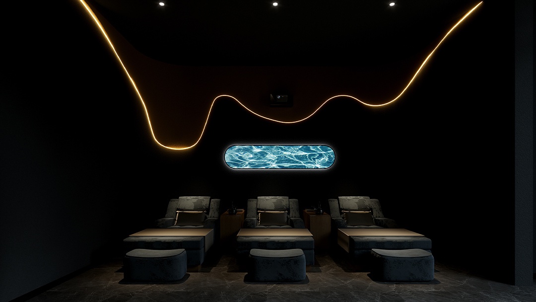 杭州養(yǎng)生禪意足浴店裝修設(shè)計,本案以“空谷回音”為禪修意境,打造都市中的靜心療愈場域。地面鋪設(shè)溫潤老船木地板,點綴枯山水微景觀。足療區(qū)設(shè)蒲團(tuán)式下沉座位,頂部懸掛手工紙燈籠,光線柔和如月暈。墻面嵌入隱形音響系統(tǒng),循環(huán)播放溪流、竹林自然白噪音?;⌒务讽攦?nèi)設(shè)呼吸引導(dǎo)光影裝置,結(jié)合艾草香薰與地暖溫石療法,在極致簡約中引領(lǐng)身心歸靜。