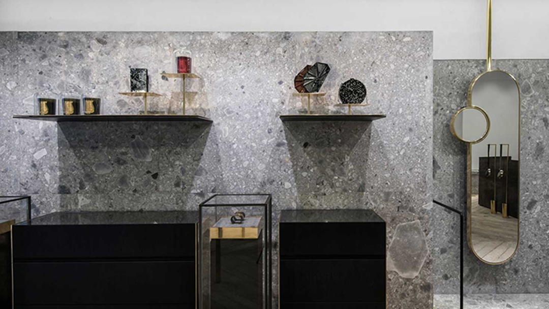 杭州奢侈品珠寶店裝修設(shè)計,以高級灰為基調(diào),勾勒出無與倫比的奢華意境。