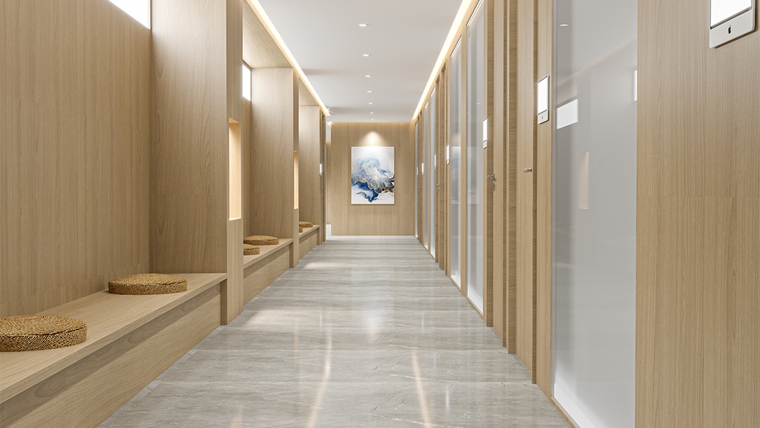 杭州宋韻文化中醫(yī)館裝修設(shè)計(jì),深度還原宋代美學(xué)中的簡凈與意境。空間結(jié)構(gòu)取法宋式建筑的開闔韻律,采用原木榫卯框架與紙筋灰墻面,營造溫潤基底。藥柜區(qū)以青瓷色釉面磚為背板,搭配竹編藥屜與銅制稱量器具。整體以低飽和度色彩與自然光影,重構(gòu)當(dāng)代語境下的宋式醫(yī)藥空間體驗(yàn)。
